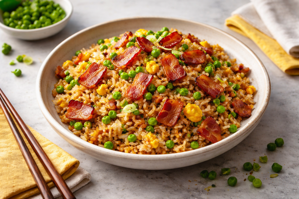 There’s something oddly specific about craving fried rice. Not just rice. Not just bacon. But that salty, smoky, slightly crispy, slightly soft, straight-from-the-wok fried rice that somehow tastes better at 8:47 p.m. when you’re too tired to cook but still too picky to settle.
