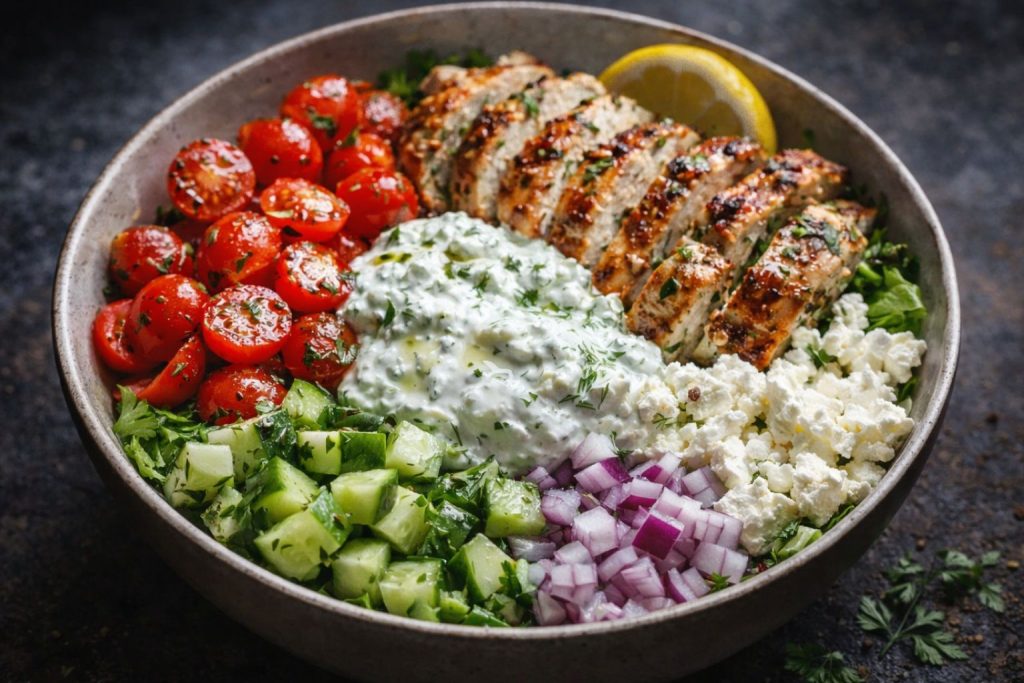 They’re fresh without being boring. Filling without being heavy. And honestly? They look impressive in the bowl — colorful layers of juicy chicken, crisp vegetables, creamy tzatziki, and fluffy rice or quinoa. It’s the kind of dinner that feels balanced and intentional, even if you pulled it together on a random Tuesday.